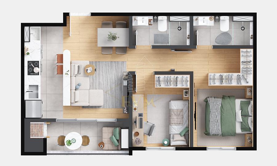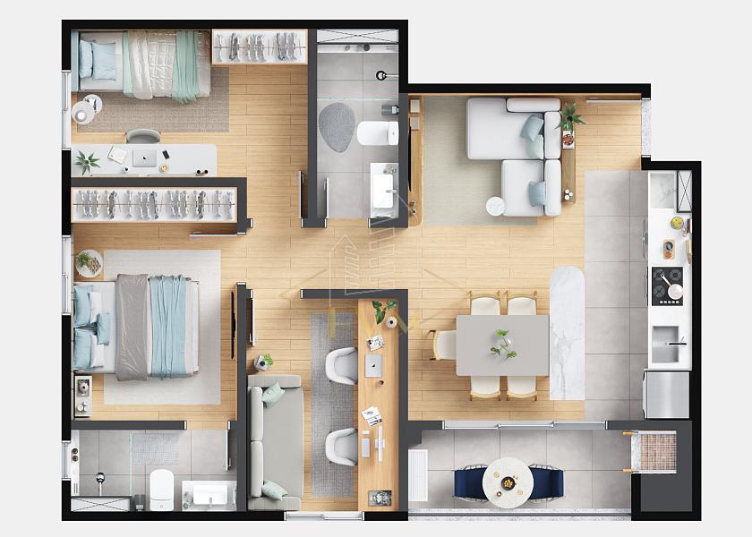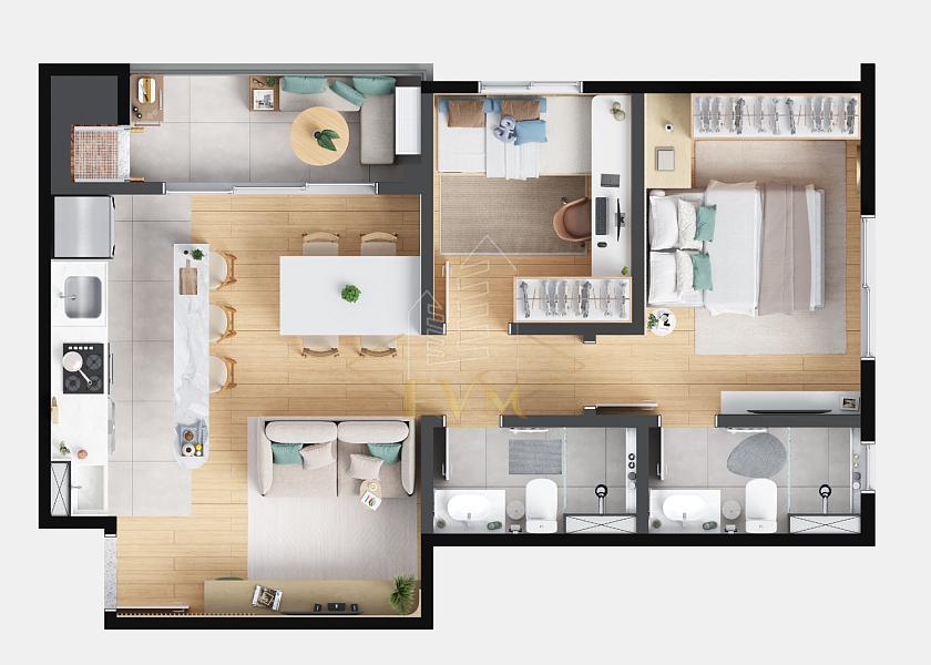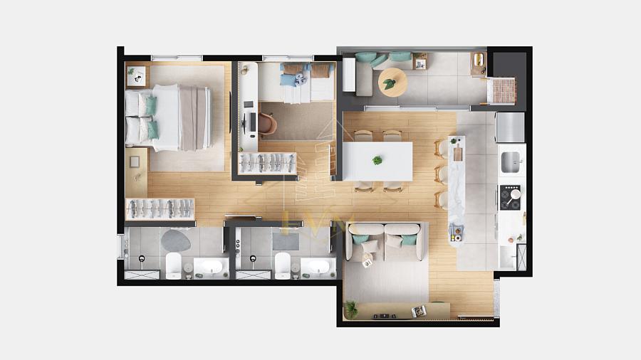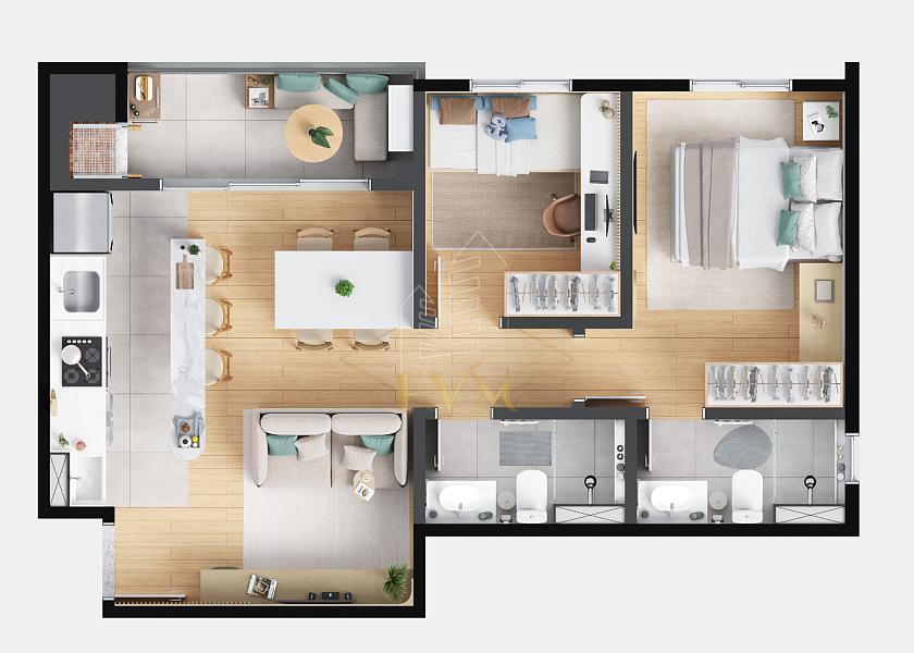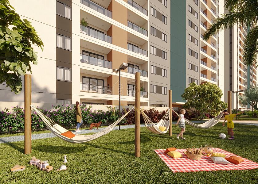 Área privativa de 64,19 m², apartamentos com 1 suíte + 2 quartos, sacada e churrasqueira, além de unidades Garden com espaço privativo ao ar livre. Ótima ventilação e iluminação natural.