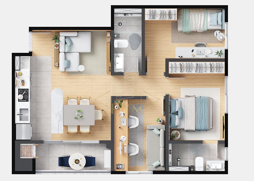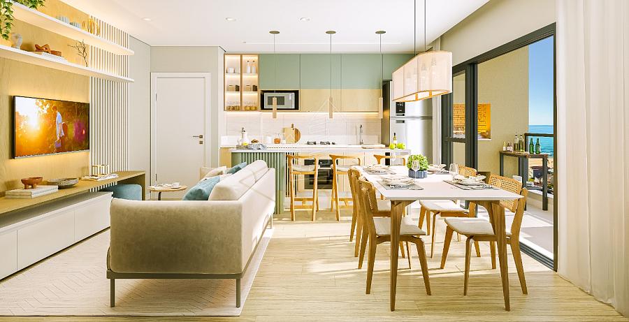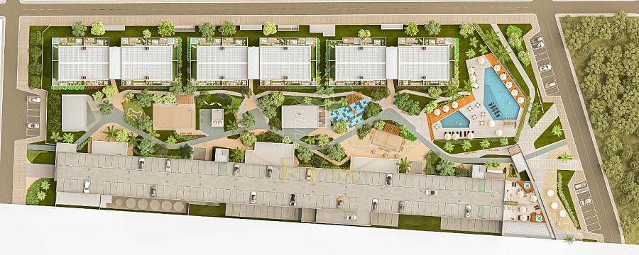 • Empreendimento com mais de 25 itens de lazer, incluindo piscina adulto e infantil com bar molhado, redário, pet square, mercado interno, espaço delivery e boulevard central inspirado em Las Ramblas (Barcelona).