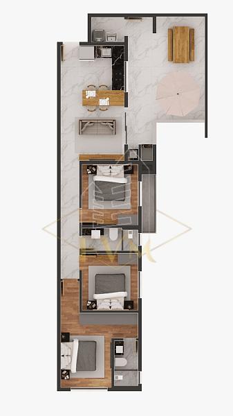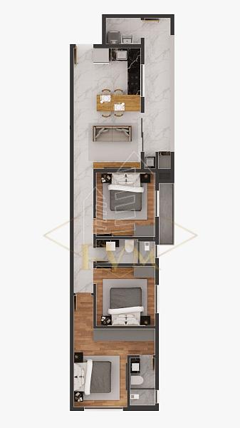 Unidades com área privativa de 58,21m² a 58,69m², com 1 suíte e 1 quarto, living room e sala de jantar, garantindo ótima ventilação e iluminação natural.