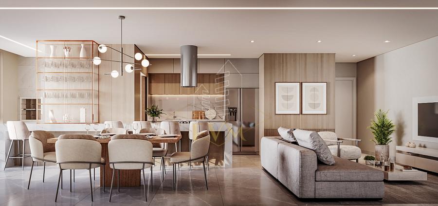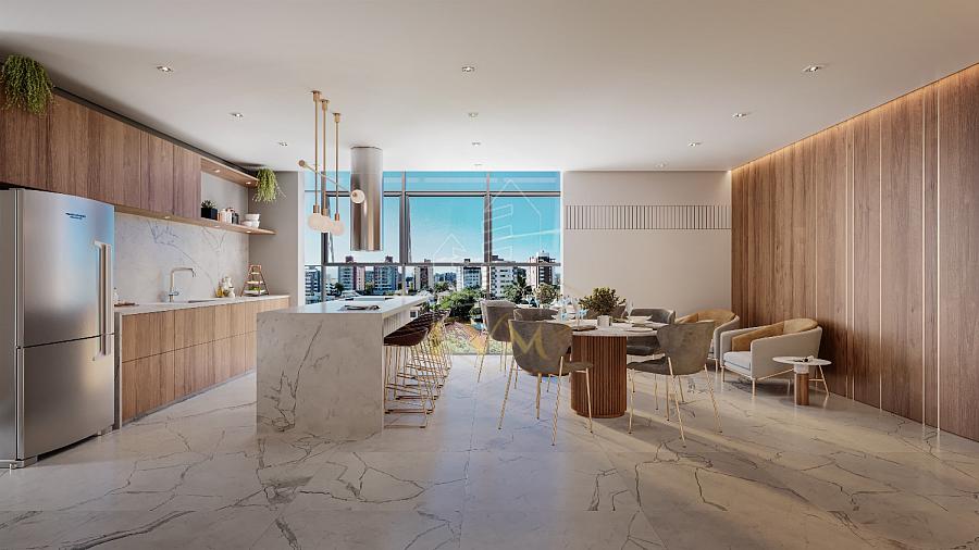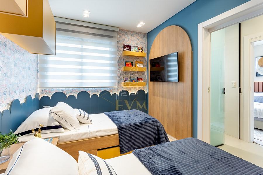 Área privativa de 113,57 m² a 116,95 m², com planta bem distribuída: suíte + 2 dormitórios, garantindo ótima ventilação e iluminação natural.