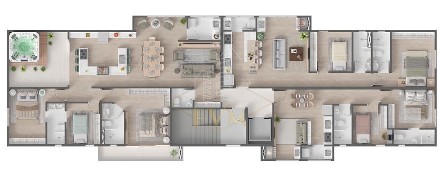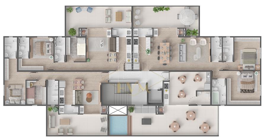 • Acabamentos de qualidade: Piso porcelenato e vinílico, acabamento em gesso.