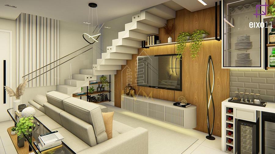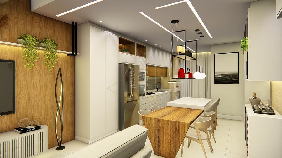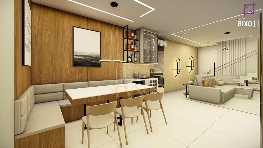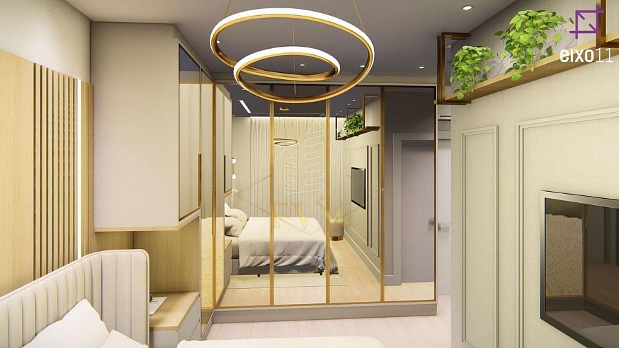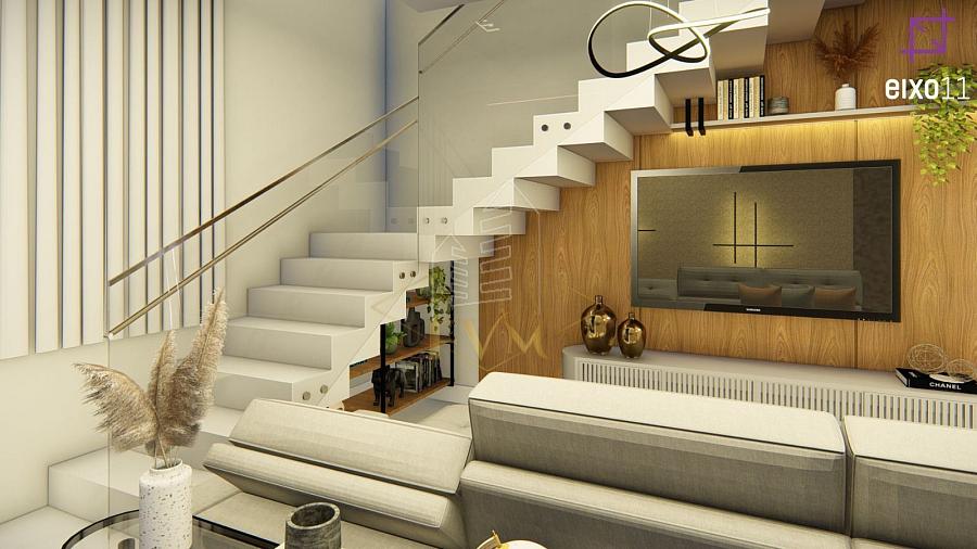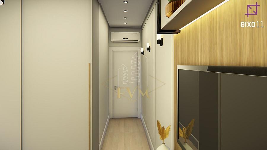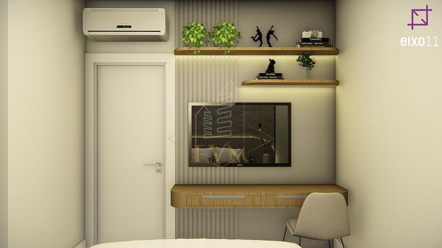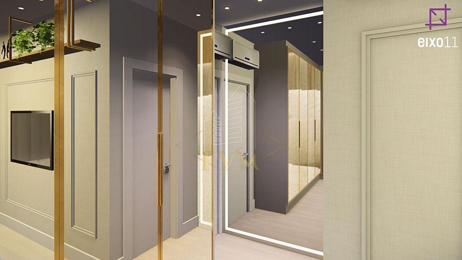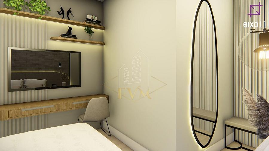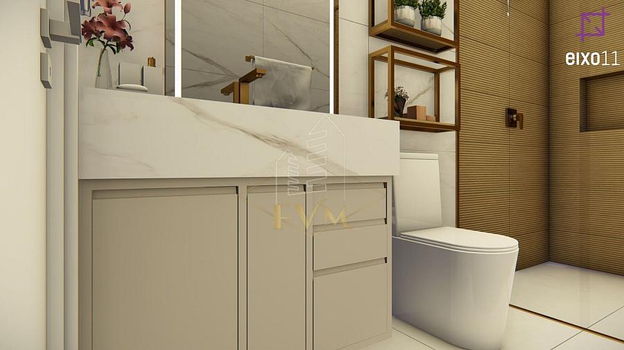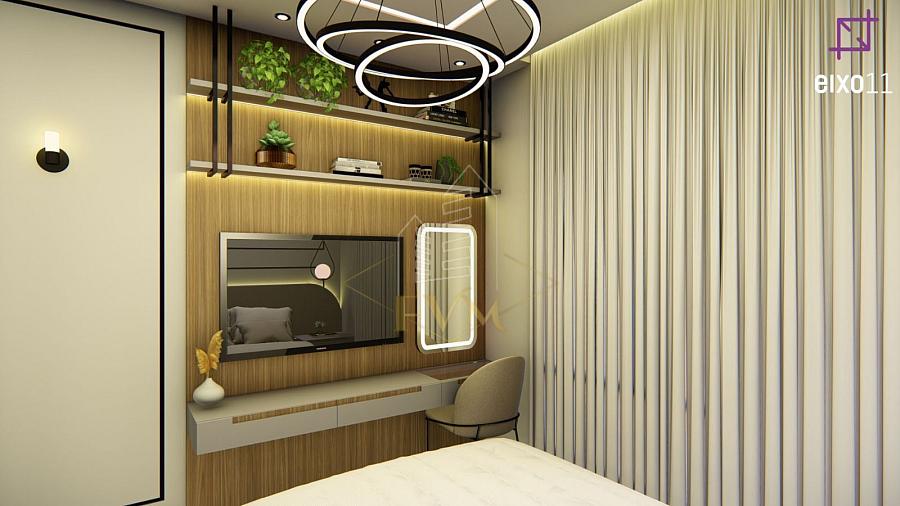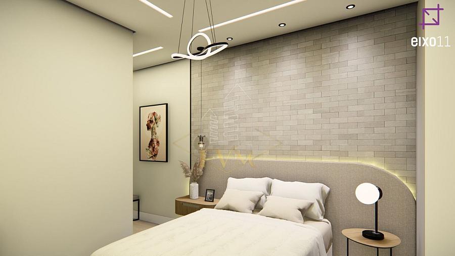 • Teto: Forro em gesso liso com dilatação e massa corrida (pintura semi-brilho).