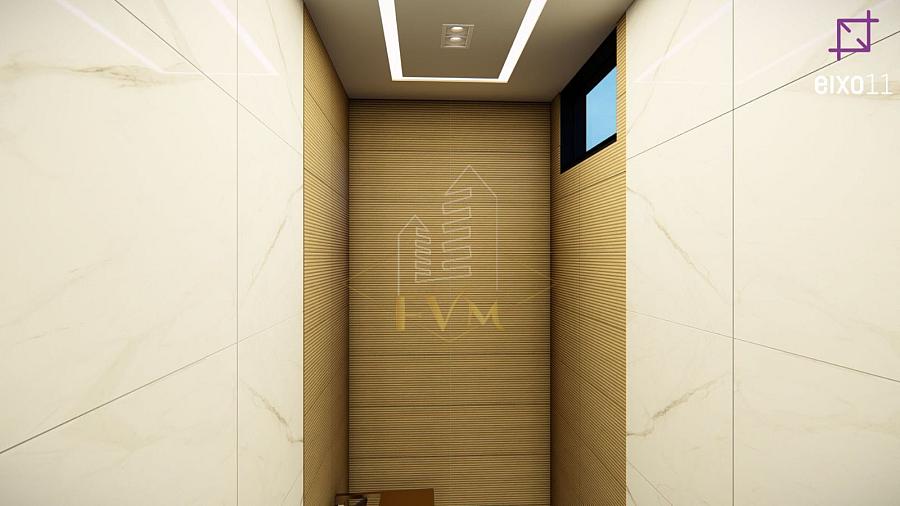 • Piso: Revestido com LVT 2mm em réguas de 1,15m x 0,15m (podendo sofrer alterações em função da cor), com capa de uso de 0,20mm, colado.