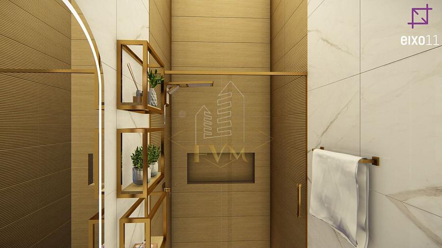 • Suíte: Com sacada embutida metálica na cor preta conforme projeto.