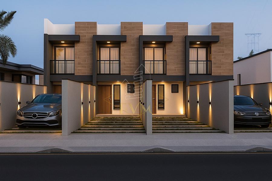 • 2 suítes amplas, 1 lavabo no piso térreo,  2 vagas de garagem,  77,80 m² de área privativa, abertura frontal de 3,20 metros, fundos variando de  5 metros com lavanderia integrada. Sendo porcelanato na parte inferior e laminado na parte superior.