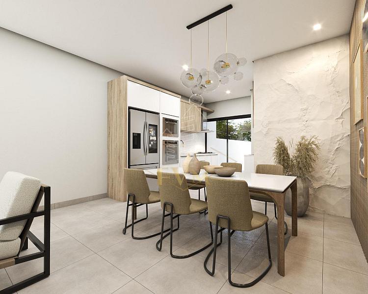 • Churrasqueira com instalação para pia de apoio, garagem com 7 metros livres, lavanderia fechada, fundos com 7,50 metros, largura 4,35 metros, esquadrias em alumínio linha suprema, portão e hall em alumínio gradeado preto, massa projetada externa e massa corrida interna, iluminação frontal com balizadores na grama.
