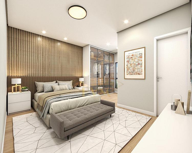 Unidades com área privativa entre 125,07m² e 126,57m², compostas por suíte (15m²) + 2 dormitórios (9m² cada), com ótima ventilação e iluminação natural.