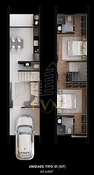 Imóvel com 70,00m², 2 suítes,  1 lavabo, cozinha e sala de jantar conjugadas, área externa ampla, living room e 2 vagas de garagem.