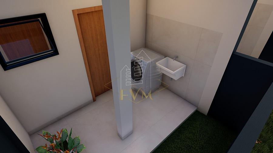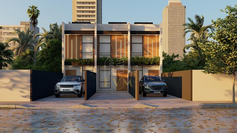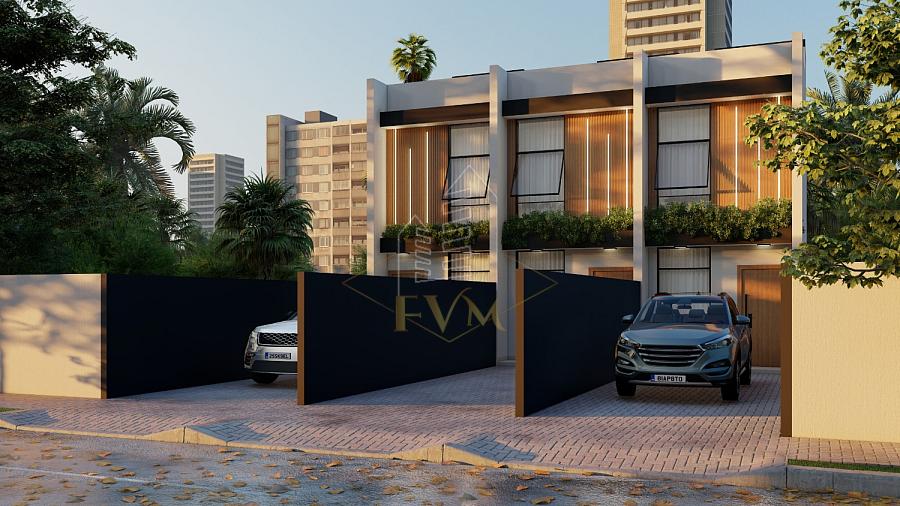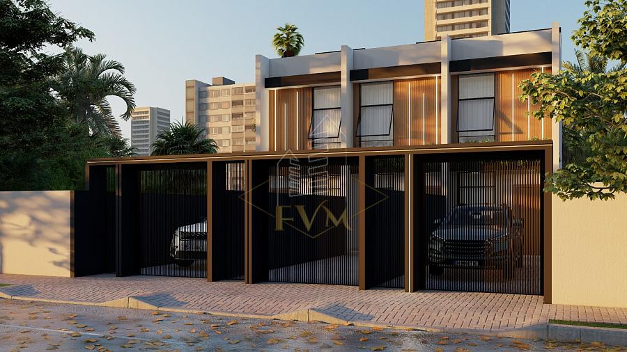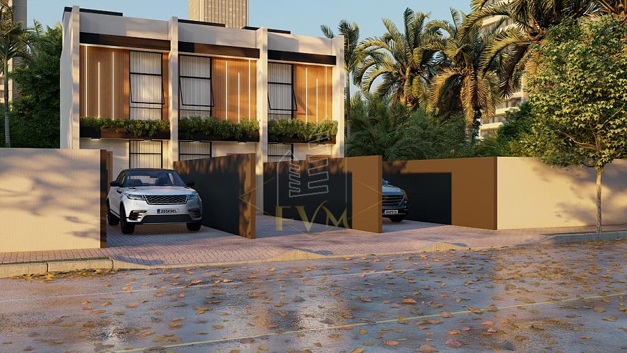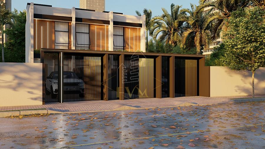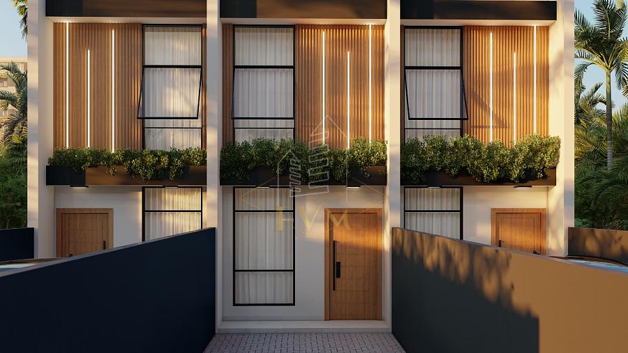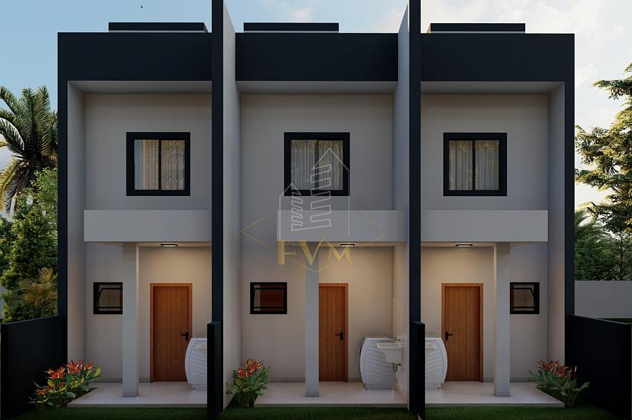 Sobrado Geminado com 61m² privativos, 2 quartos, BWC Social, lavabo, cozinha, piso porcelanato, massa corrida, sala de estar, área de serviço e 2 vagas de garagem.